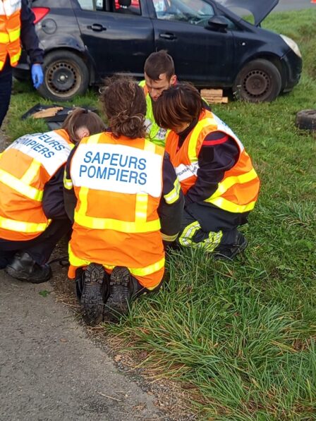 Les pompiers de Saint-Martin-du-Bois sont venus dimanche matin 9 novembre faire des manœuvres à la maison de retraite (progression sous appareil respiratoire) et au carrefour de la Croix des Marais (simulation accident).